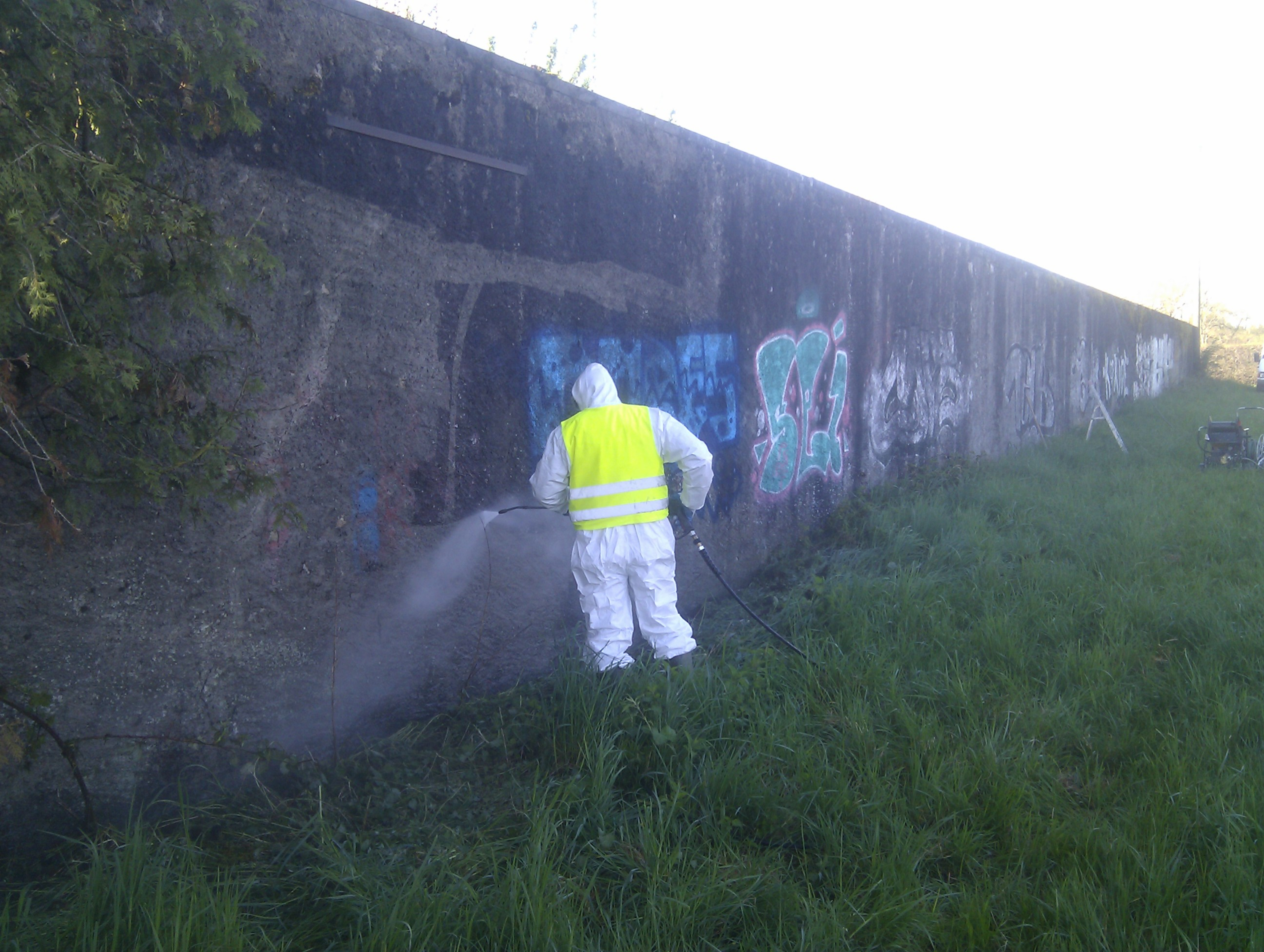 L’atelier propose 3 places de travail et effectue entre autres une dépollution visuelle des graffitis sur toutes les surfaces (bois, béton, molasse, pierre, panneaux en métal-thermo- laqué, etc.) en suivant les normes d’application en vigueur (lavage, peinture, sablage). La pose de protection anti-graffitis transparente peut représenter des avantages économiques.